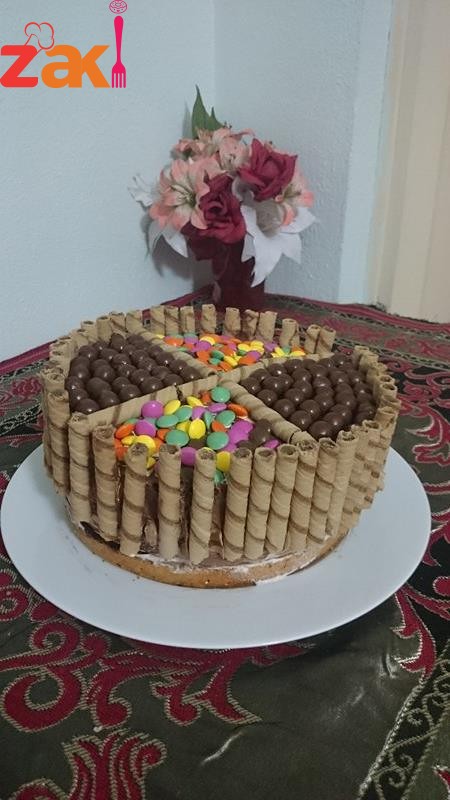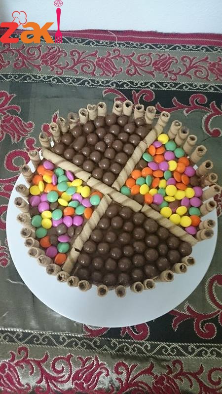 التزيين:بسكوت شوكولا أصابع جاهزة على الأطراف وبالداخل سميرة وحبوب الشوكولاتا الجاهزة وصحتين ومية هنا أسفة عالإطالة 😍
