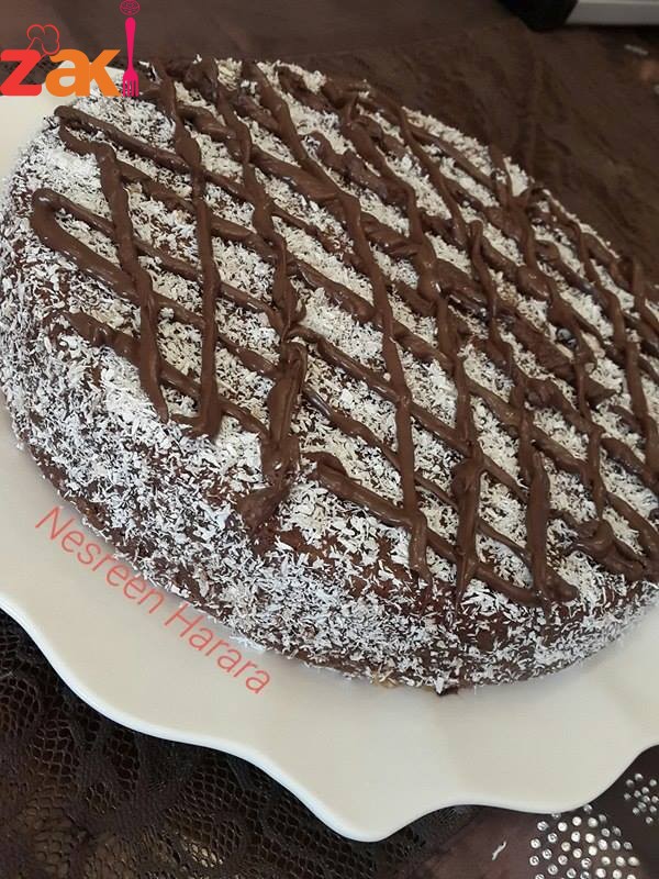 وتزين حسب الرغبة انا دهنتها بالفرشاة قطر خفيف (ممكن تدهني شوكولا دهن او صوص)ورشيت جوز عند وعملت خطوط بشوكولا دهن