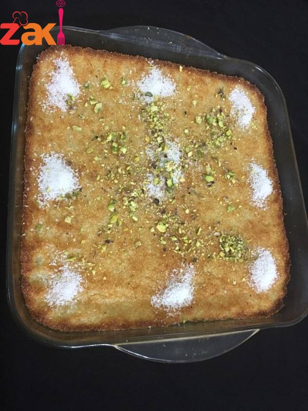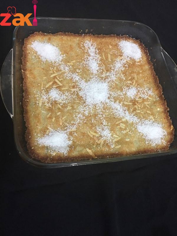تخلط المواد الجافة معاً وتضاف المواد السائلة وتخلط توضع في صينية مدهونة بالسمنة
