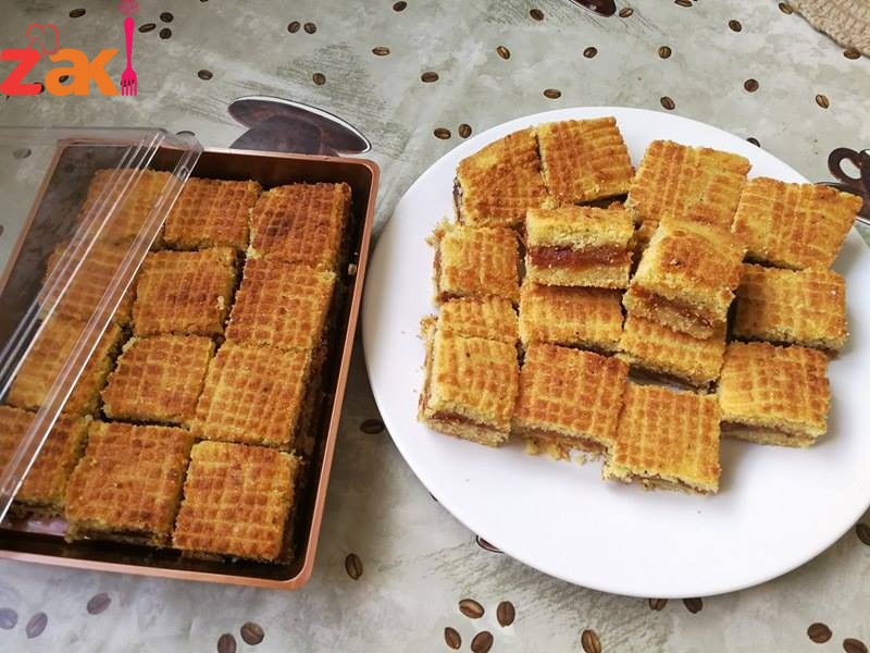 بنخبزها بالفرن وبعد ما تطلع على طول نقطعها بالسكين وبس تبرد بنرش السكر البودره