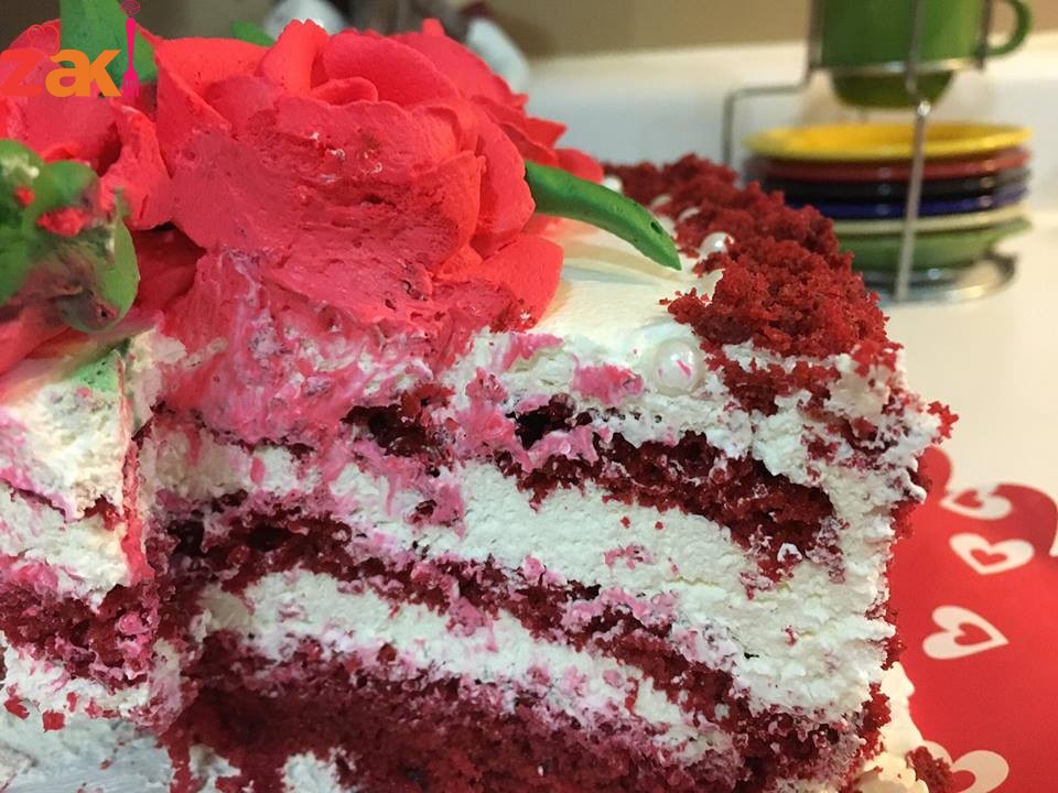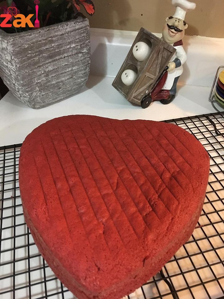 ويقلب بالملعقة من الأسفل الى الأعلى للمحافظة على الهواء داخل الكيك يدخل فرن حامي مسبقا حرارة ٢٠٠ من ٣٥ الى ٤٠ دقيقة تترك الكيكة لتبرد وتقسم ثلاث طبقات تشرب