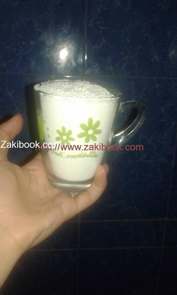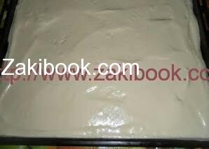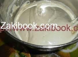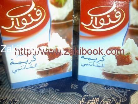 – نضع طبقة من كريم شانتي ( تخلط بودرة الكريمة مع ماء او حليب بارد حسب الرغبة).