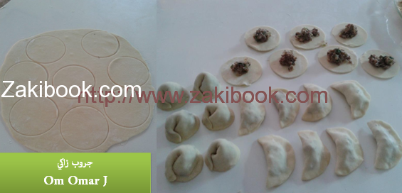 يحشى العجين حسب الصور ثم تشوى ولكن دون ان تنضج