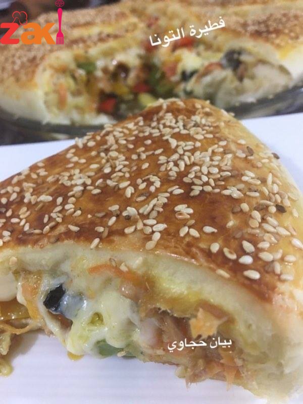 تذبل البصلة بالزيت ويضاف الفلفل الملون والزنجبيل والثوم والجزر مع رشة كزبرة تضاف التونا والزيتون ونطفئ النار