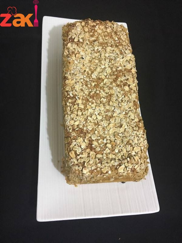 ويرش بالشوفان وتدخل الفرن المحمى مسبقاً وتخبز حتى تستوي