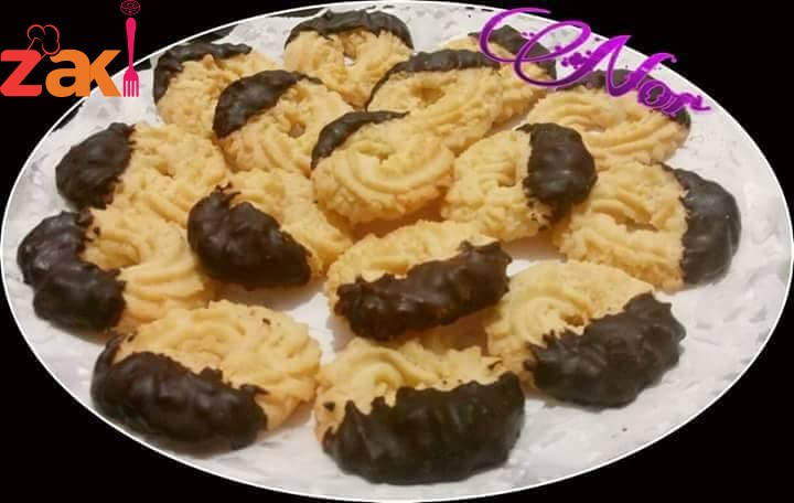 وتعجن العجينة جيدا ويشكل بالقمع وبخير في فرن متوسط الحرارة وبالف هنا
