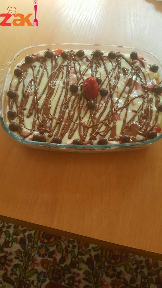 وبنبلش نصف بسكويت وموز وبنرجع بنحط الخليط وكمان بسكويت وموز وفريز