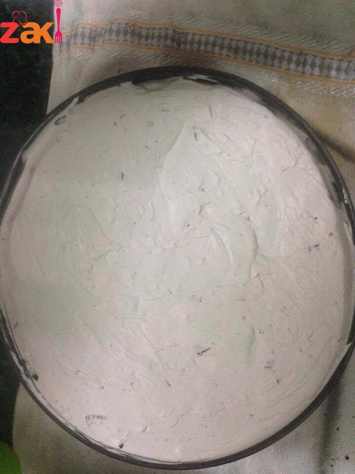وبنخلطهن بالملعقه بنكون حاطين في قالب التشيز كيك بسكوت الاوريو