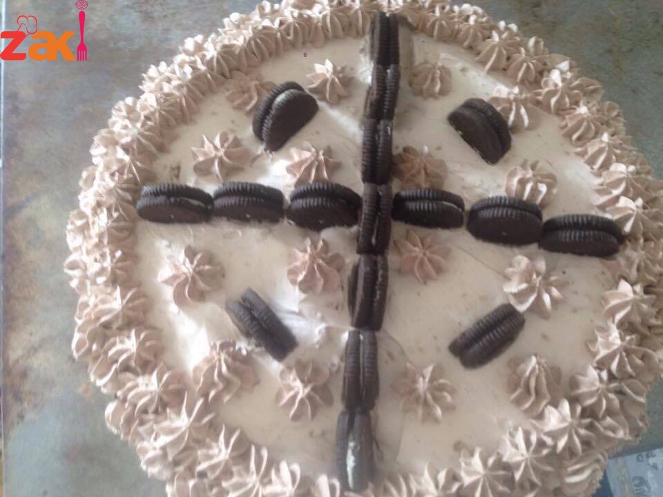 وغمسناه بالحليب والنسكافيه ونسكب الخليط فوق الاوريو والتزييين حسب الرغبه