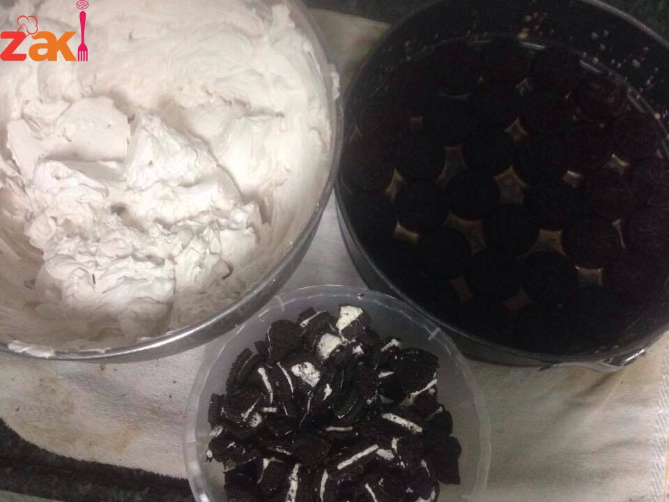 مع تغييير بسيط مني وضعت الاوريو حبه كامله في قاع الصينيه