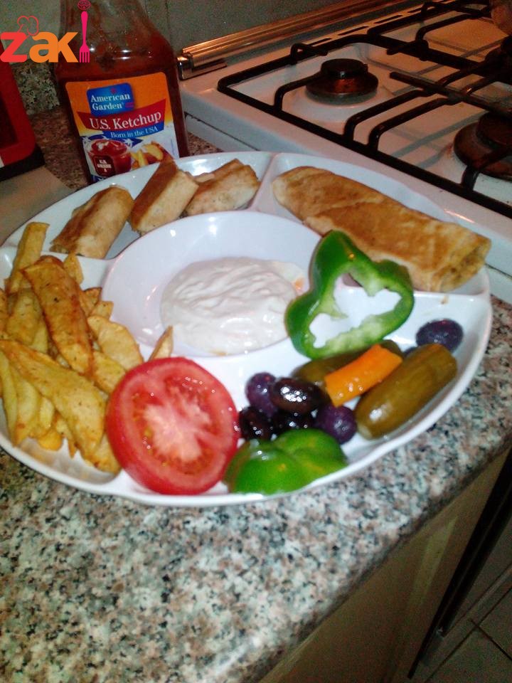.طبعا الموضوع ما بيكتمل من غير البطاطا المقلية ومخلل الخيار