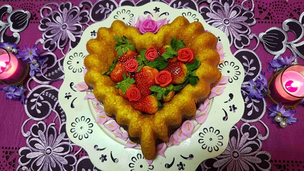 .ندهن القالب بالسمن ونرشه بالدقيق ونصب الخليط بالتناوب على دفعات ثم بواسطة سكين رفيعة نحرك الخليط بشكل دائري بالقالب مع الانتباه لعدم وصول السكين الى قاع القالب ويوضع بالفرن مدة 40 دقيقة ونختبر استواء القالب بواسطة غرز سكين وخروجها نظيفة
