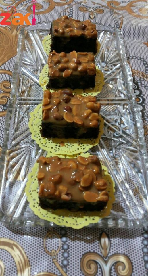 طبقه صوص شوكولاتة ومكسرات مقطعه وليست مسحونه وتوضع فوق الكيكة وانجهز الكراميل