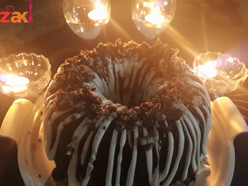 * يخبز الكيك في الفرن على درجة 180 أو متوسطة .