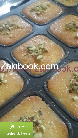 والان نبدأ وصفة بسبوسة بالقشطة ومع مقادير الوصفة،