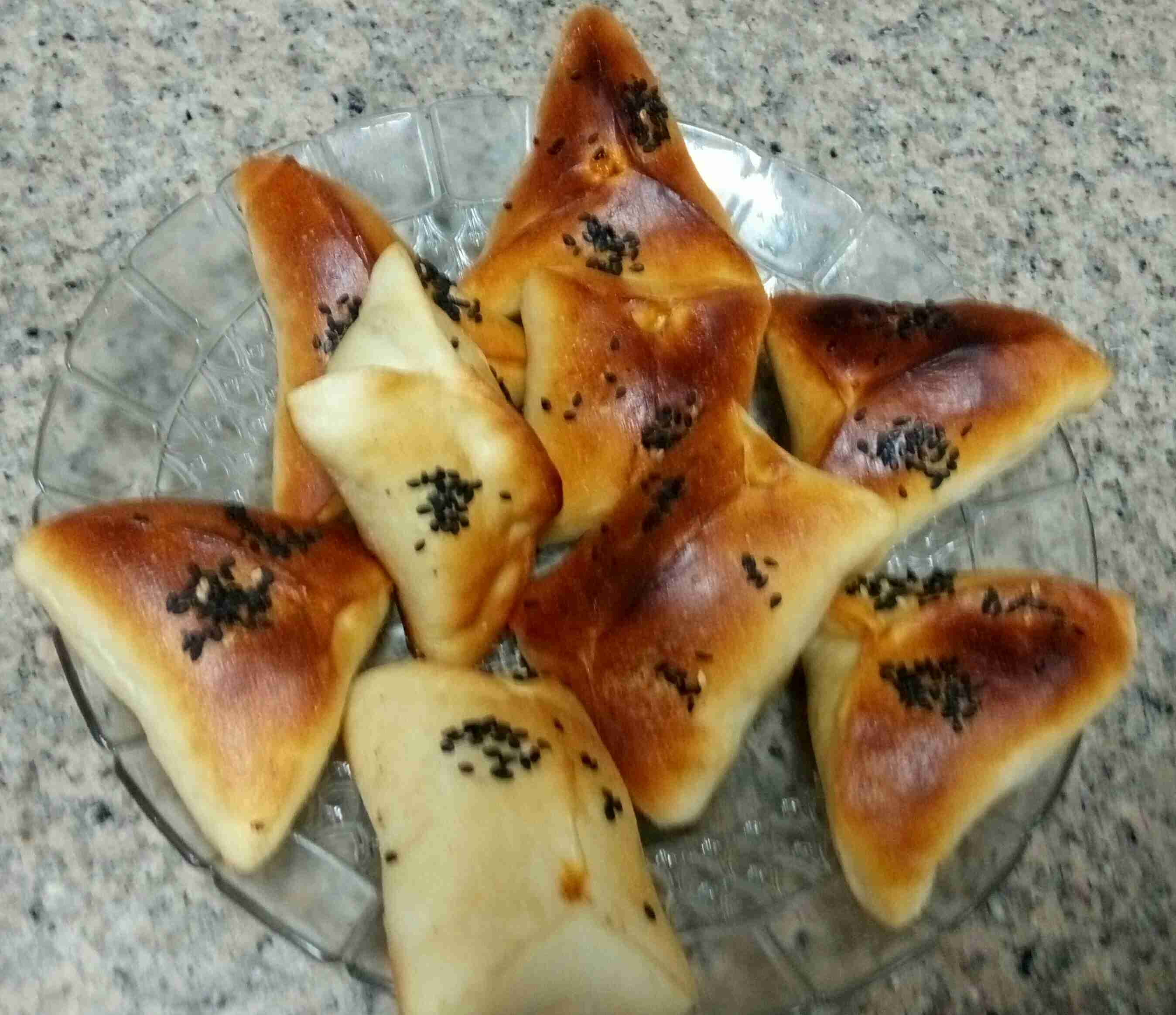 ومندهنها بخليط البيض ومنرش عليهون سمسم اسود ومنخبزهم بفرن حامي شغال فوق وتحت وبعد مايحمرو منحطون بطبق ومنغطيون بقطعة قماش او كيس نايلون .
