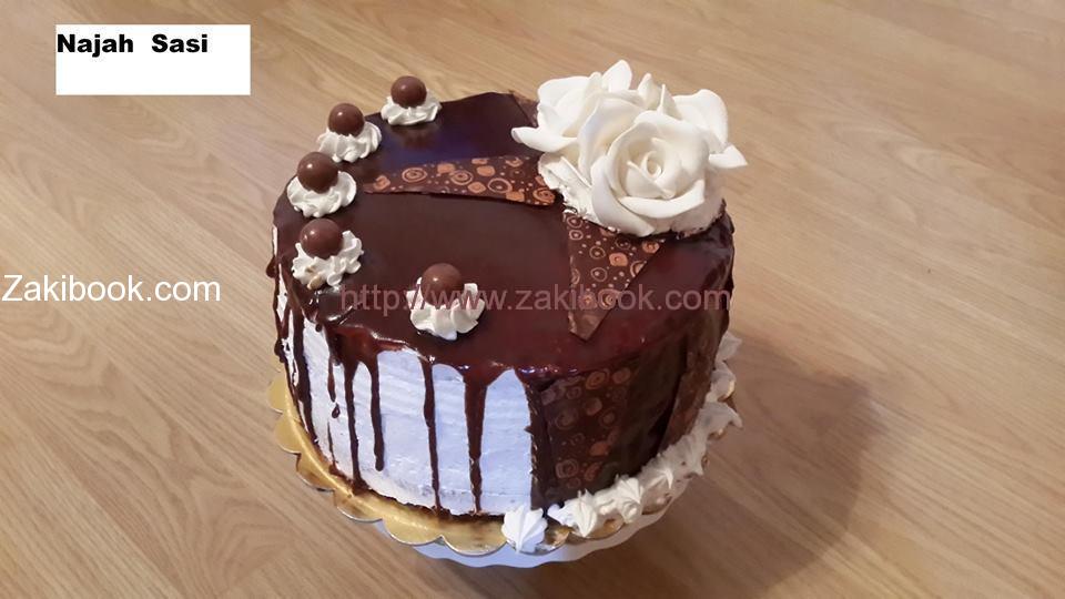 – انا عملت كيكتين وكل كيكه قسمتها من النص بعد مابردت وشلت الي عوجه الكيكه وحشيتها كريمه وحطيتهم فوق بعض وغطيتهم بالكريمه وبالشوكه مررتها بشكل دائري عليها.