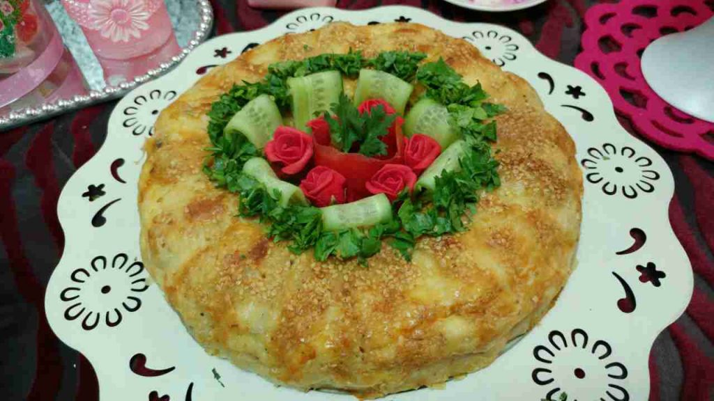 مساء الفل… كيكه الكوكيز تغيير في شكل الكوكيز هي نفس عجينه الكوكيز بس فردتها في صينيه… …جبت ورقه جلاش وفردتها في القالب ده بحيث تغطي كل القالب والاطراف طالعه لبره بعد ما دهنت القالب سمنه وسمسم…وجبت بيضتين وملح وفلفل ولبن وضربتهم..وبقيت اقطع باقي ورق الجلاش حتت طوليه واغمسها في البيض وارص في قاع الصينيه..واحط جبن مشكله وزيتون..واغطي بورق جلاش متغمس في البيض..وطبقه جبن لغايه ماخلصت الجلاش وطبقت الاطراف عليهم في الاخر وسقيت بباقي اللبن وحطيتها في الفرن ولما طلعت قلبتها….