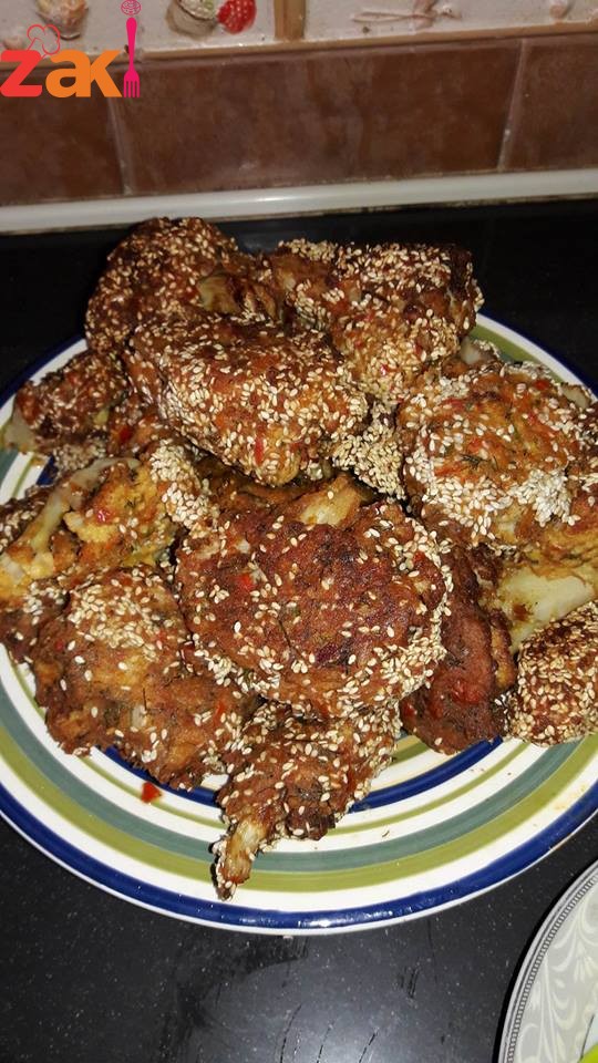 بتضربيهم بالخلاط. مع إضافة ملح وكركم ومعلقة زيت زتون ..وبضفيلهم فنجان طحين وفنجان بقسماط وحكي منيح وغطسي الزهرة بالخلاط لتمسك فيها منيح وحطي سمسم أبيض عليها بعطيهاطعم خطير واقلي بزيت حامي وقلبيها عالجهتين .