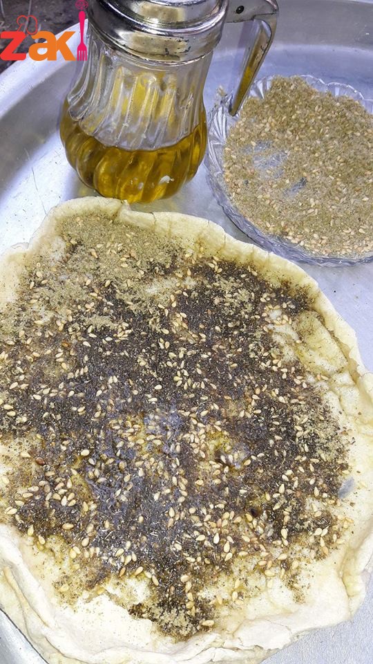 وبنفردهم بالكماجة وبندهن زيت زيتون وبنرش زعتر وينفرد الزعتر والزيت بشكل دائري على لرغيف