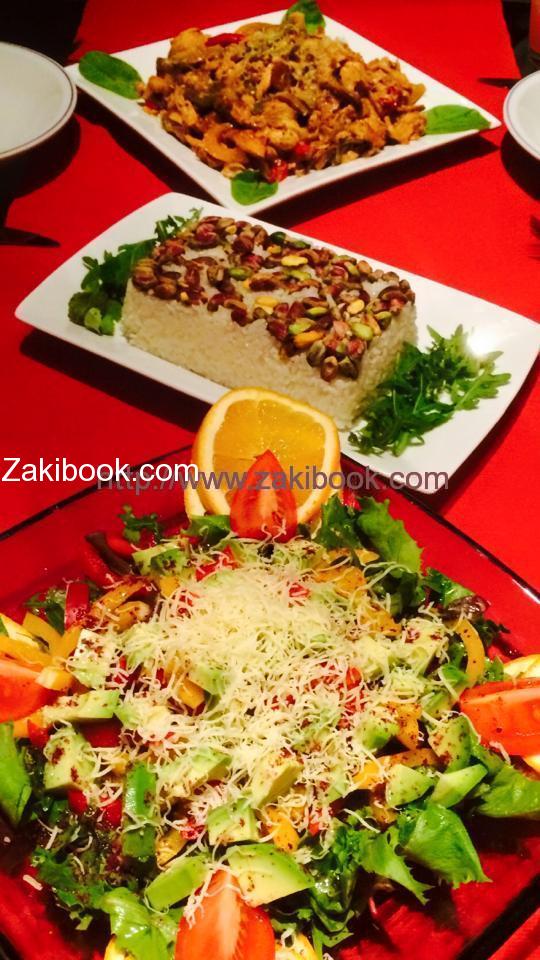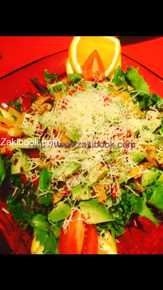 – اول شي ميني روكا و بعدين نحط فليفله ألوان و بعدين نحط افوكادو و بعدين عصرة لليمون و زيت زيتون و بعدين رشة سماق و بعدين نحط جبنة بارمزان الف صحة و عافية.