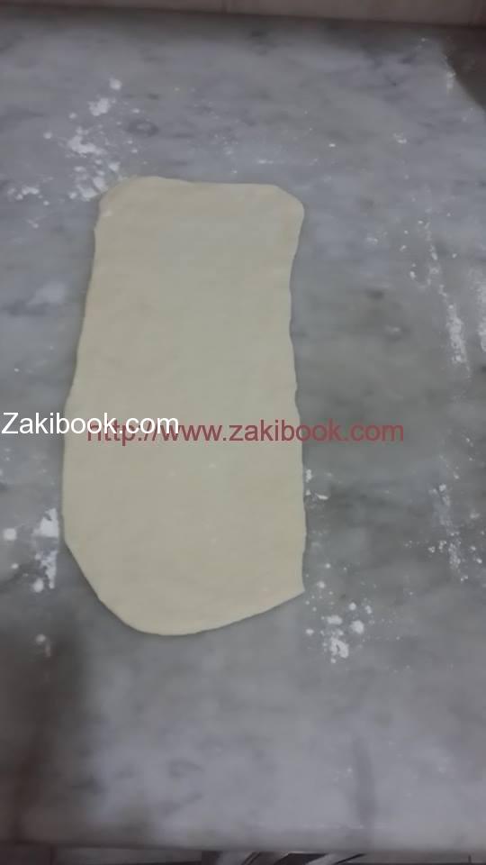 ثانياً/ نفرد العجينة على شكل مستطيل.