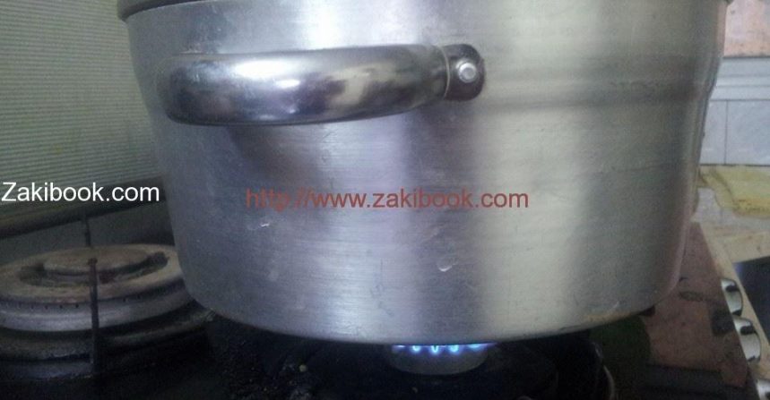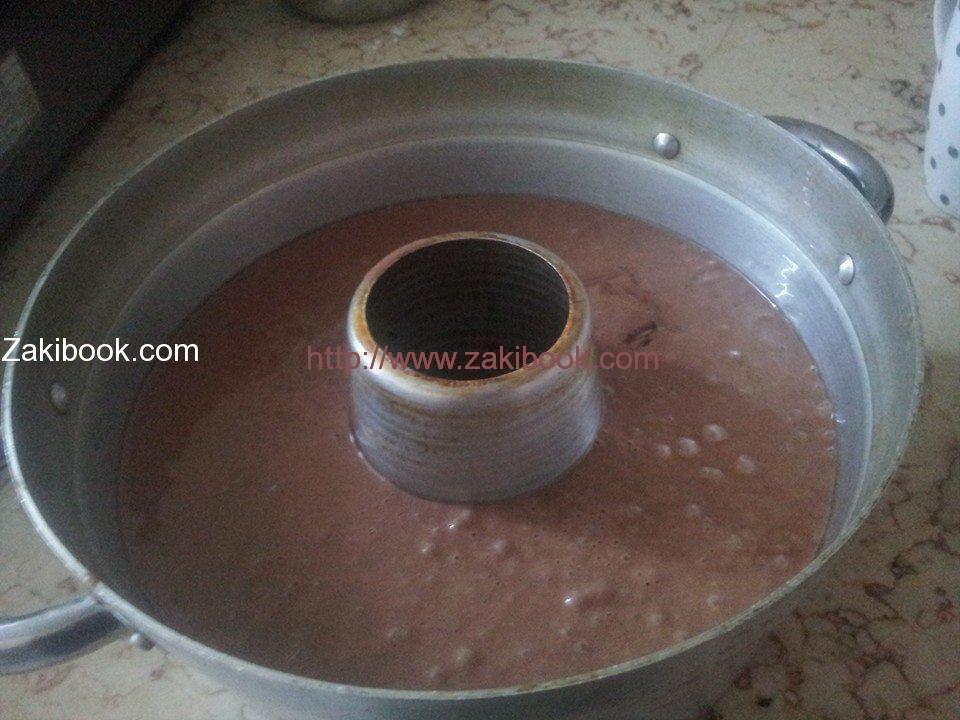 – ادهني القالب بالزيت ثم ضيفي الخليط وغطيه حطي ع نار عالية على الراس الصغير لمدة تتراوح 5دقائق لكي ما تعجن معك وبعدين وطي الغاز وخليها تستوي ع نار هادية بدها ساعة إلا ربع.