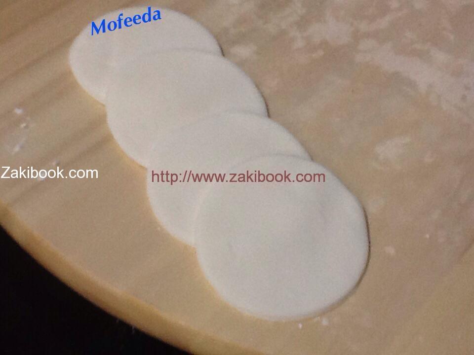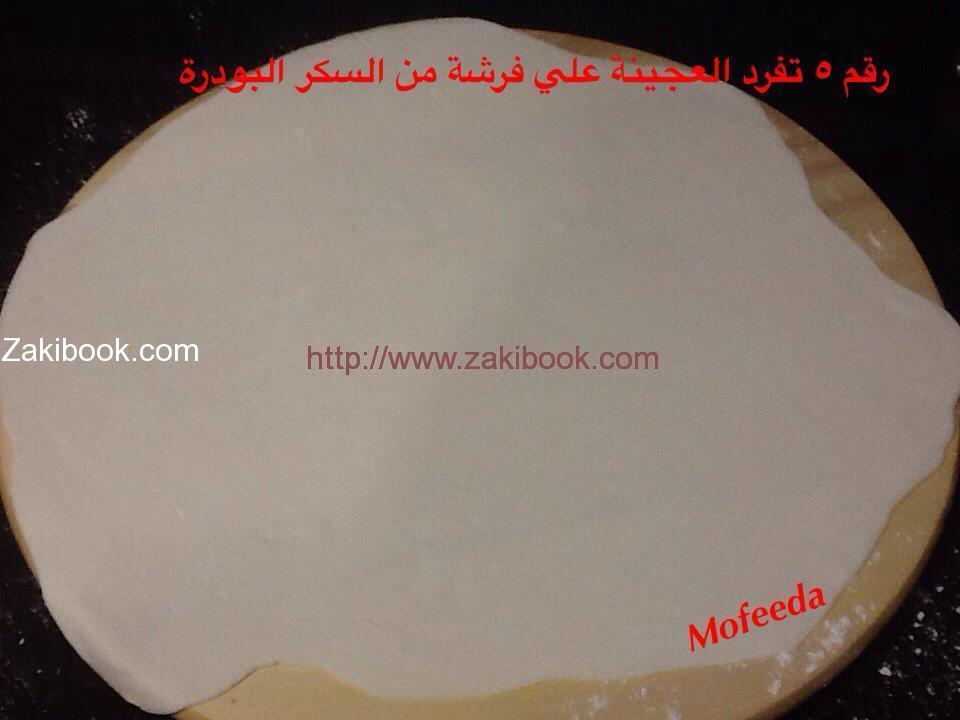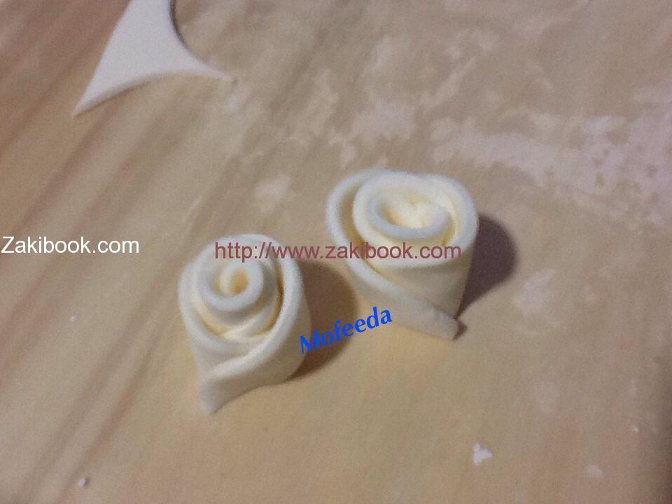– نفرد العجينة وفي القطاعة نشكلها على شكل ورقة, أو باستخدام السكين ممكن قصها على شكل ورقة.