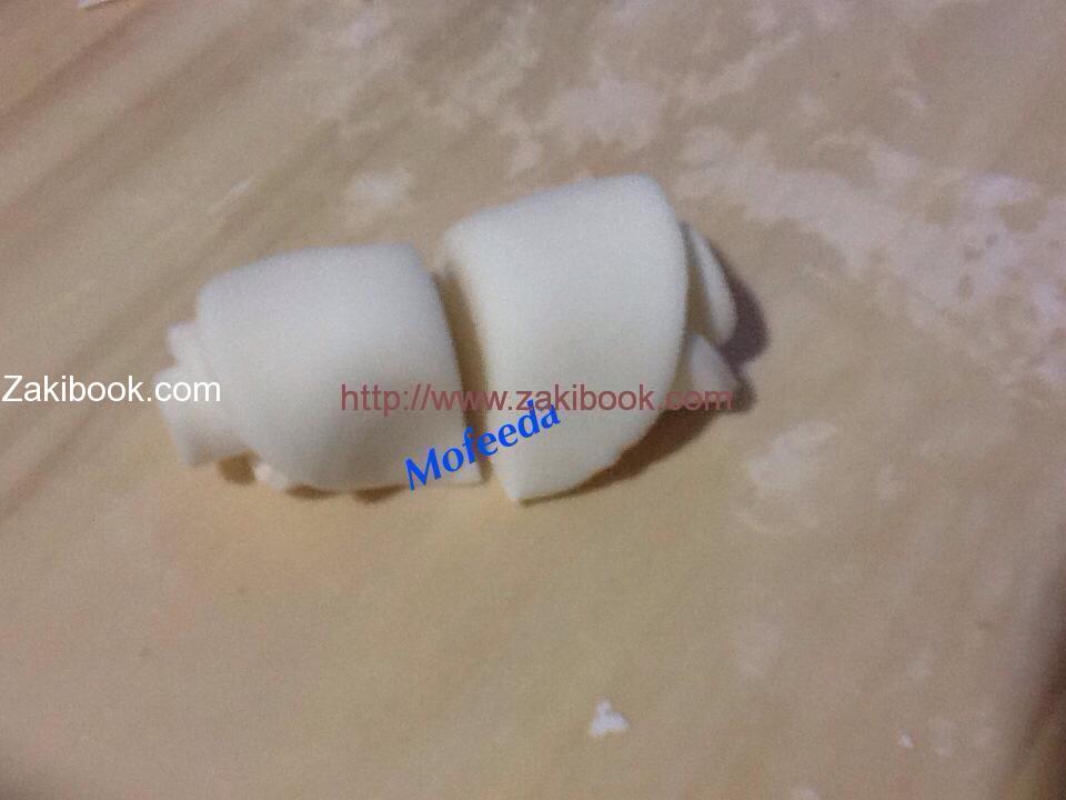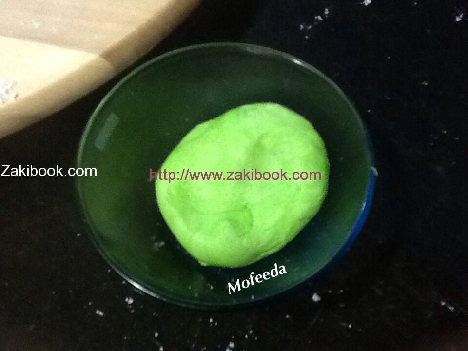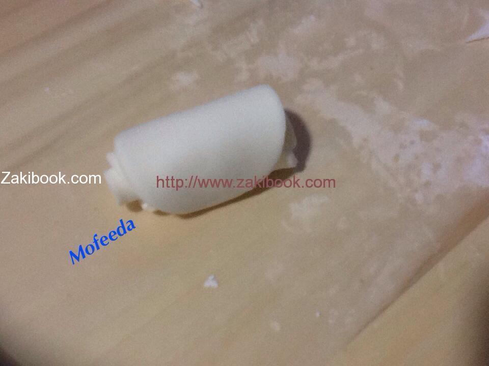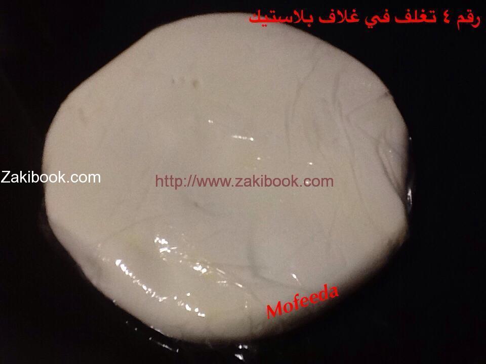 – ندهن بلاستيك خفيف ( كيس نايلون) بالسمن وتلف العجينة وتوضع في الثلاجة لحين الاستخدام.