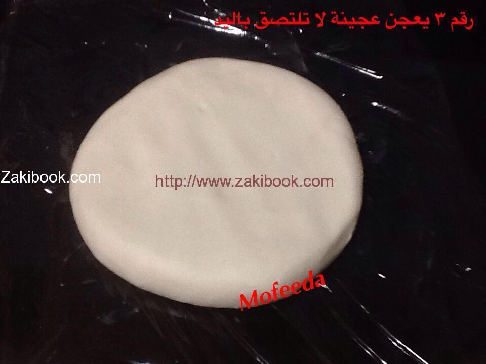 – تدهن اليد بالسمنة وتكمل العجينة باليد, وإذا لاقيتها بتلزق ضيفي سكر بودرة بالتدريج.