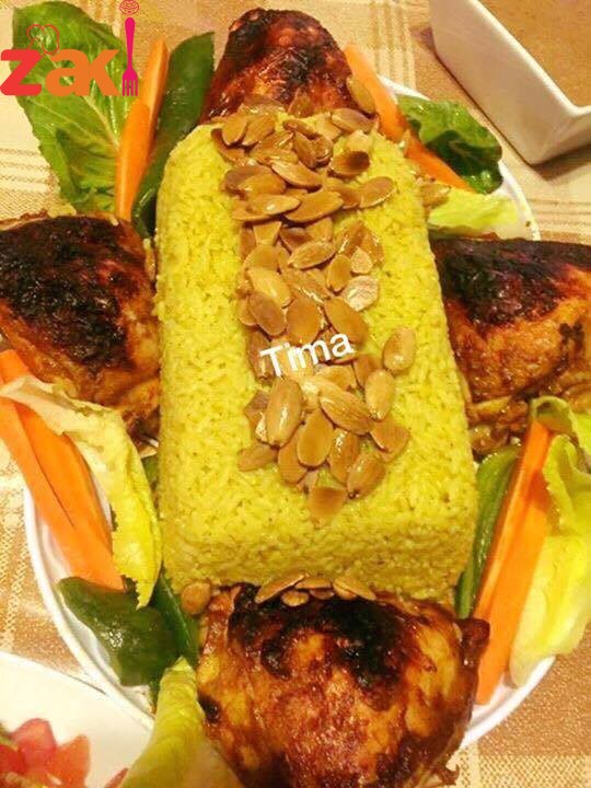 بقلب الرز بالزيت وبضيف عليه الملح والبهارات وبضيف مرق الدجاج وبتركن عالنار على نار خفيفه حتى يستوي الرزالدجاج المشوي: