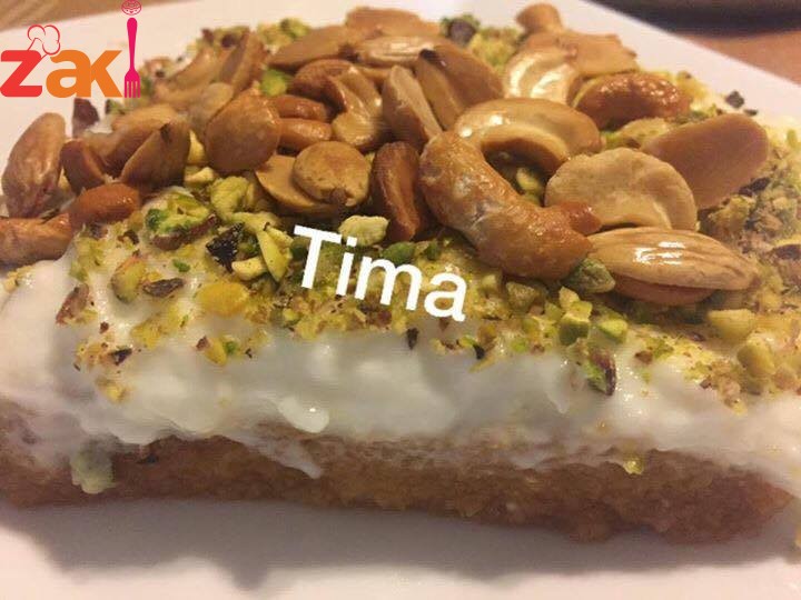 تسكب بالصينيه وتترك حتى تبرد عالاخرتوضع فوقها القشطه والمكسرات