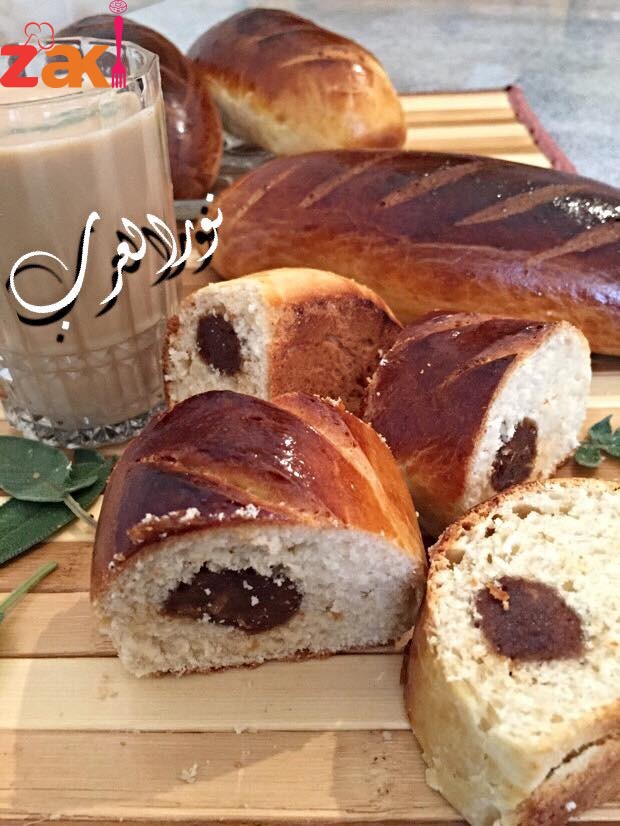 نخلط هل المكونات مع بعض ممكن بالعجان وممكن حتى بالايد ونلم المكونات بالدقيق ومعاه 2ملعقة كبيرة خميرة خبزة نعجنها حتى تتحول لعجينة طرية وناعمة وماتخليها يابسه ، نتركها تختمر نصف ساعة وبعدين نقرصها اما دوائر زي خبرة البورقر او خبزات طويلة وحجمها صغير ونحشيها بالتمر بحيث نفردها بايدي او على الرخامة ونحط إصبع طويل من التمر ونغلق العجينة ونبرمها على الرخامة حتى تصبح ملساء ونخليها نصف ساعة بالسفرة تختمر مرة ثانية ، نسخن الفرن وندهنها بالبيض المخلوط بملعقة نسكافيه وندخلها بفرن ساخن على 250درجة حتى تتحمر ،