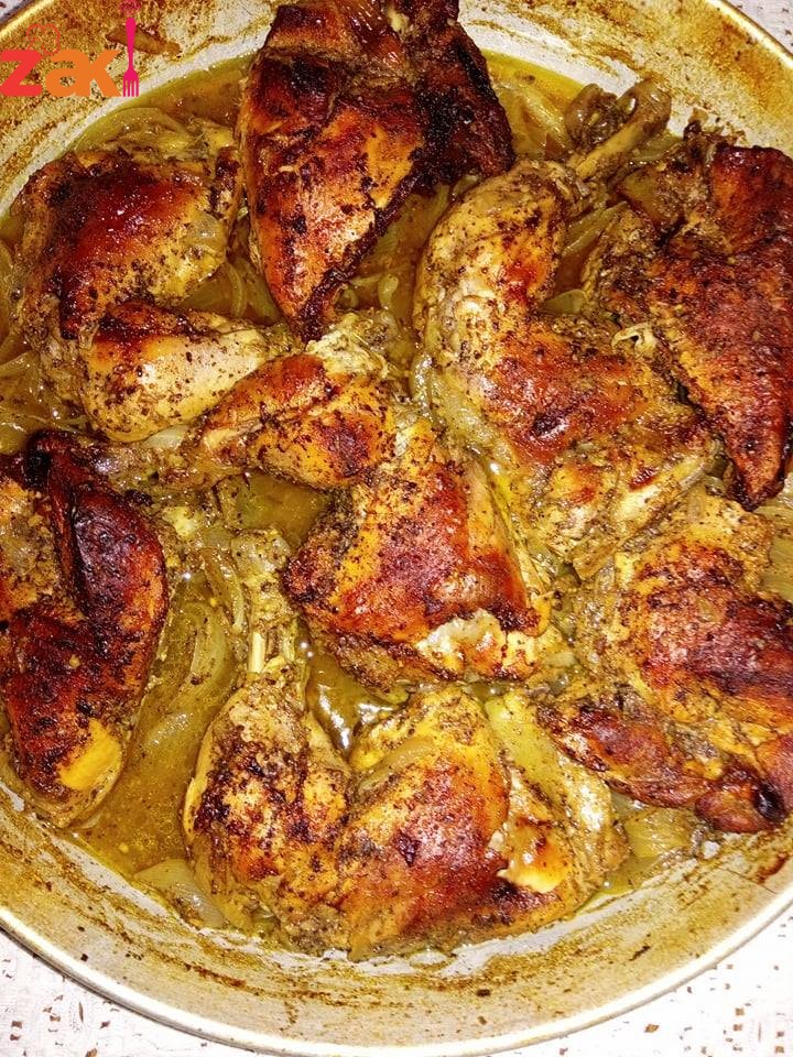 وهيل ناعم وكبسيها كركم وكاري وزيت زيتون وقرفه وملح وفلفل وافركي الجاج فيه