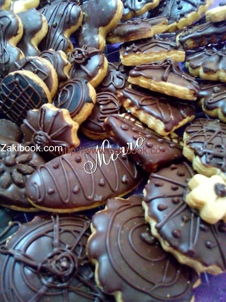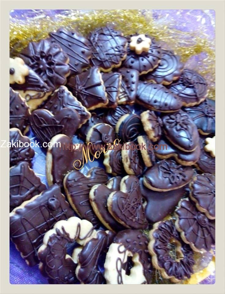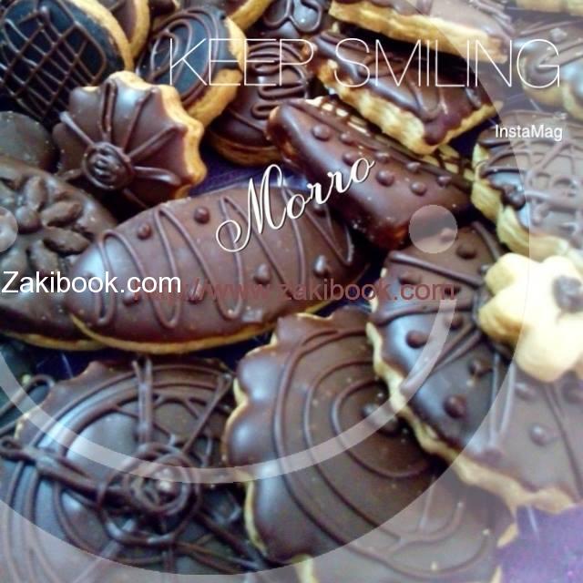 – دخلي الصينية إلى الفرن على درجة حرارة 180 حتى تحمر من الأسفل, ثم شغلي الشواية لتحصلي على لون ذهبي من الأعلى.– اخرج حبات السابليه من الفرن, واتركها لكي تبرد تماماً, ثم أغطس وجه السابليه بالشكولاتة, واترك الشكولاتة تبرد, وعندما تبرد أحضر كيس نايلون وأقوم بقصه من الأسفل بفتحة صغيرة جداً, وأضع به شكولاتة, وأبدأ أمشي على البسكويت على شكل خطوط, وممكن تزينوه بأي شكل بتحبوه.