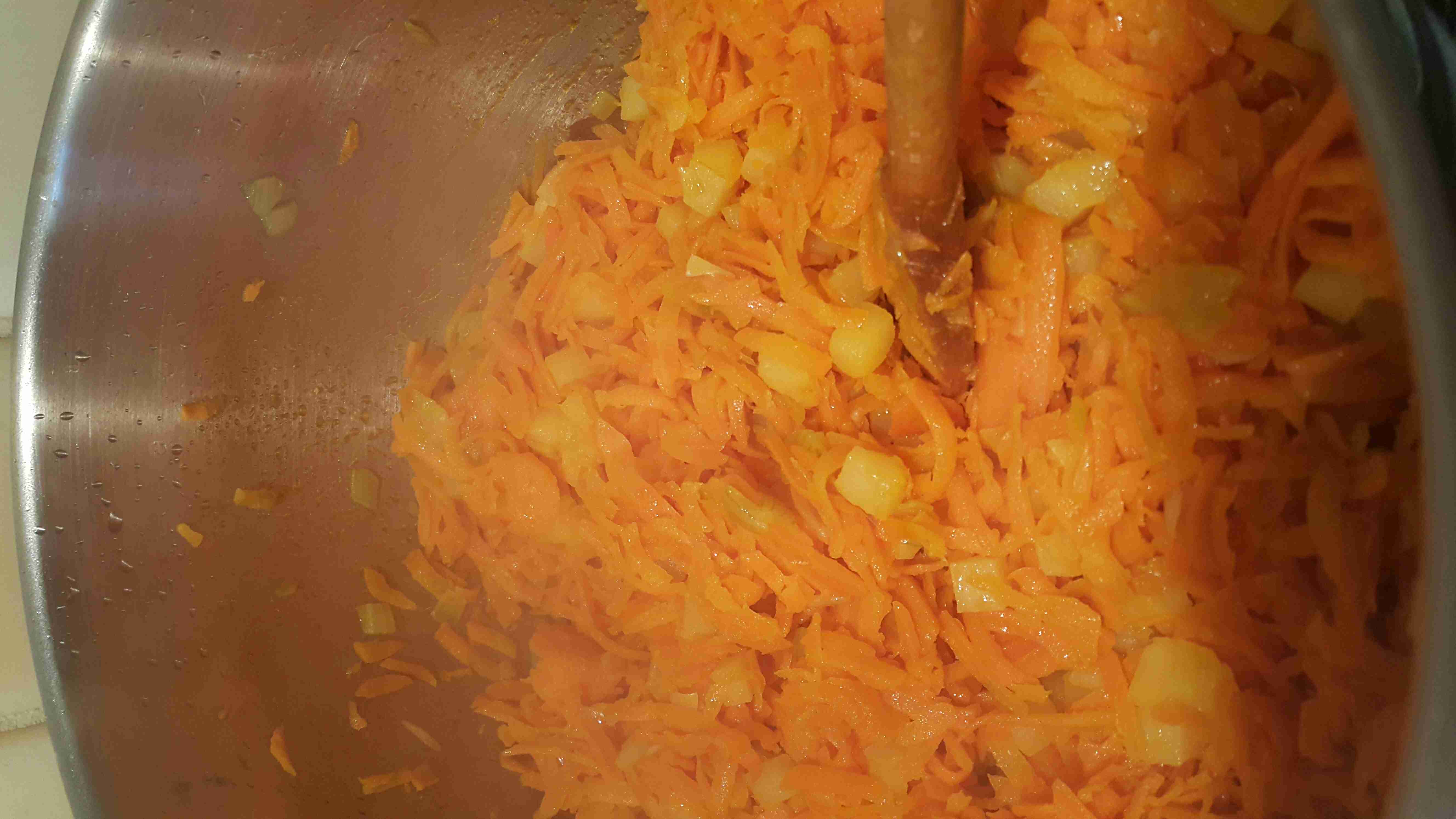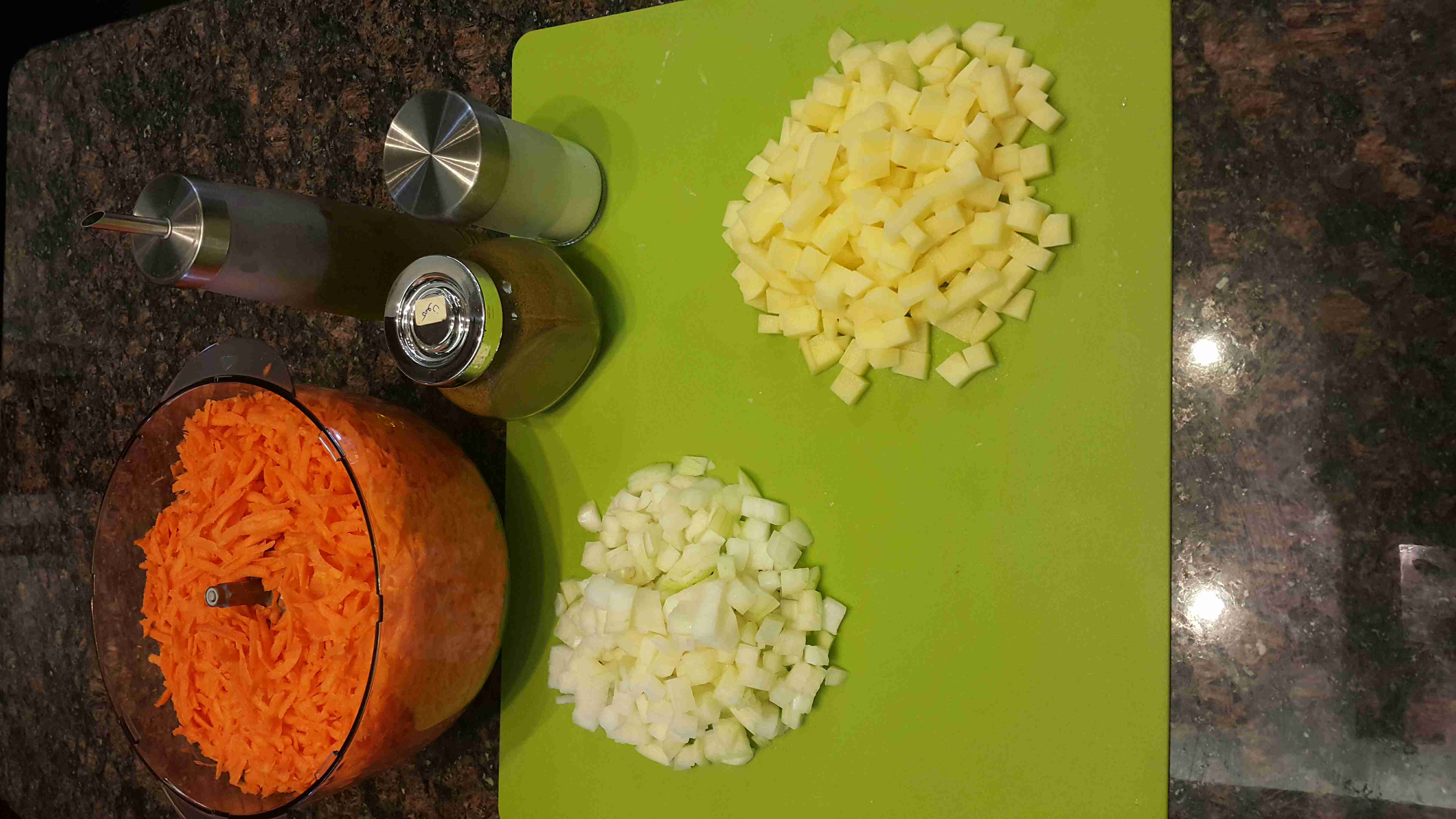 • 10 جزرات مبروشين – بصلة متوسطة مقطعة ناعم – حبة بطاطا مقطعة ناعم – ملح – كمون