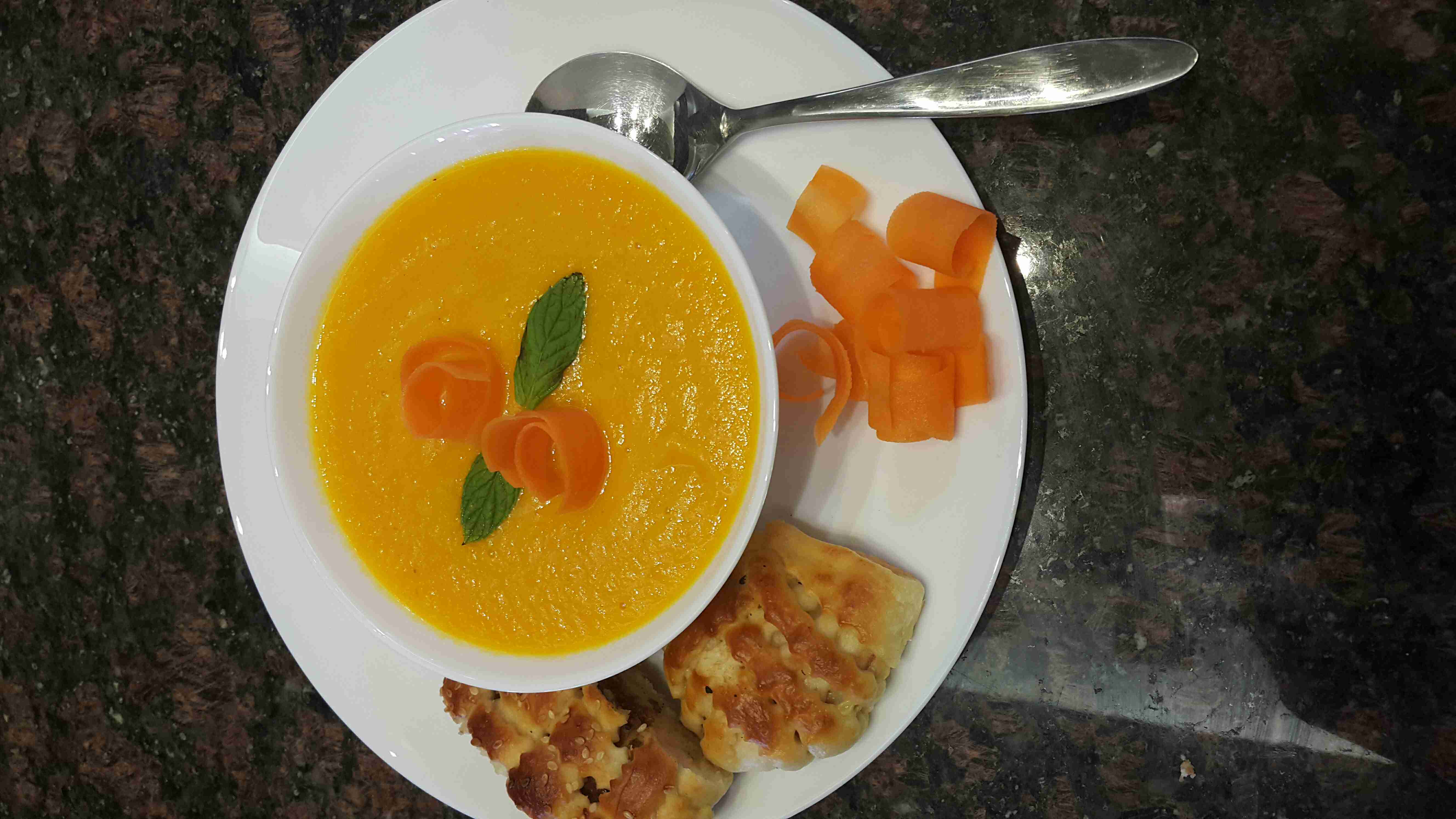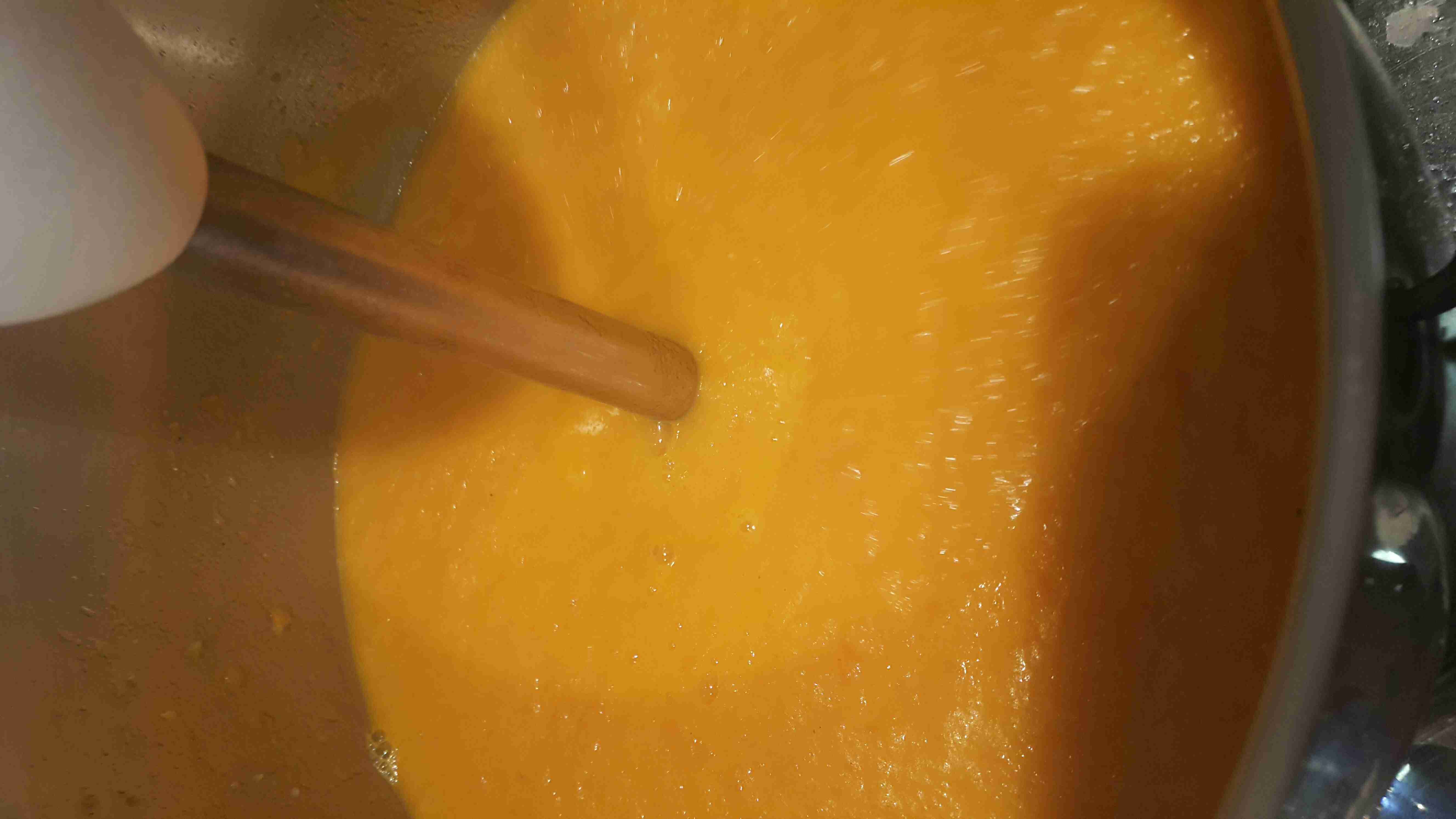 ثم يغمر الجزر بالماء المغلي وتغطى الطنجرة مدة ربع ساعه لتغلي ثم يوضع الملح والكمون وتطحن في خلاط العصير أو البلندر اذا توفر ويجب أن يكون قوامها كريمي .
