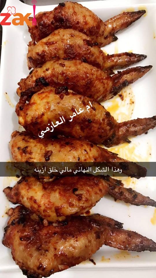 نخلط المكونات كلها بعدين بفرشة ندهن اجنحة الدجاج وخليها ٥ دقايق على نار هادئة