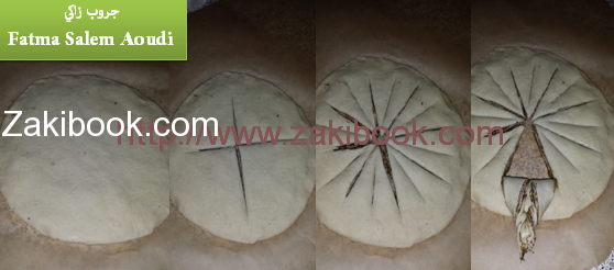 – ومن ثم نرق اول رغيف وندهنها بالزيت والزعتر ومن ثم نرق الرغيف الثاني ونضعه على الاول ونكرر العملية لحد اربع ارغف وبعدين نقطعها مثل ما انتم تشاهدوا بالصورة.