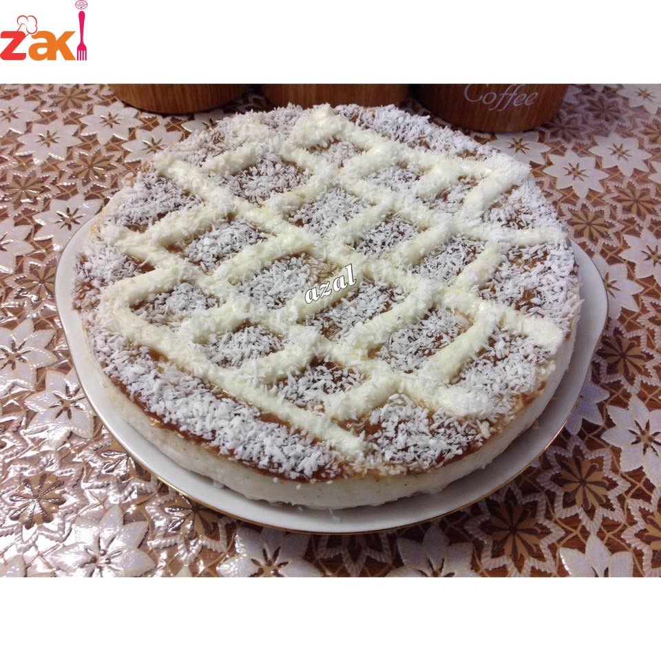 نرص في قالب البايركس طبقة من البسكوت، الطبقة الثانية :ثلاثة كوب حليب سائل، اربعة ملاعق نشا،ملعقة صغيرة هيل، فانيلا ،سكر حسب الذوق نخلطهم على البارد ونضعهم على النار مع الخفق المستمر حتى يثخن نرفعه من النار ونضيف علبة قشطة،نصف كوب جوز الهند يوضع على طبقة البسكت،