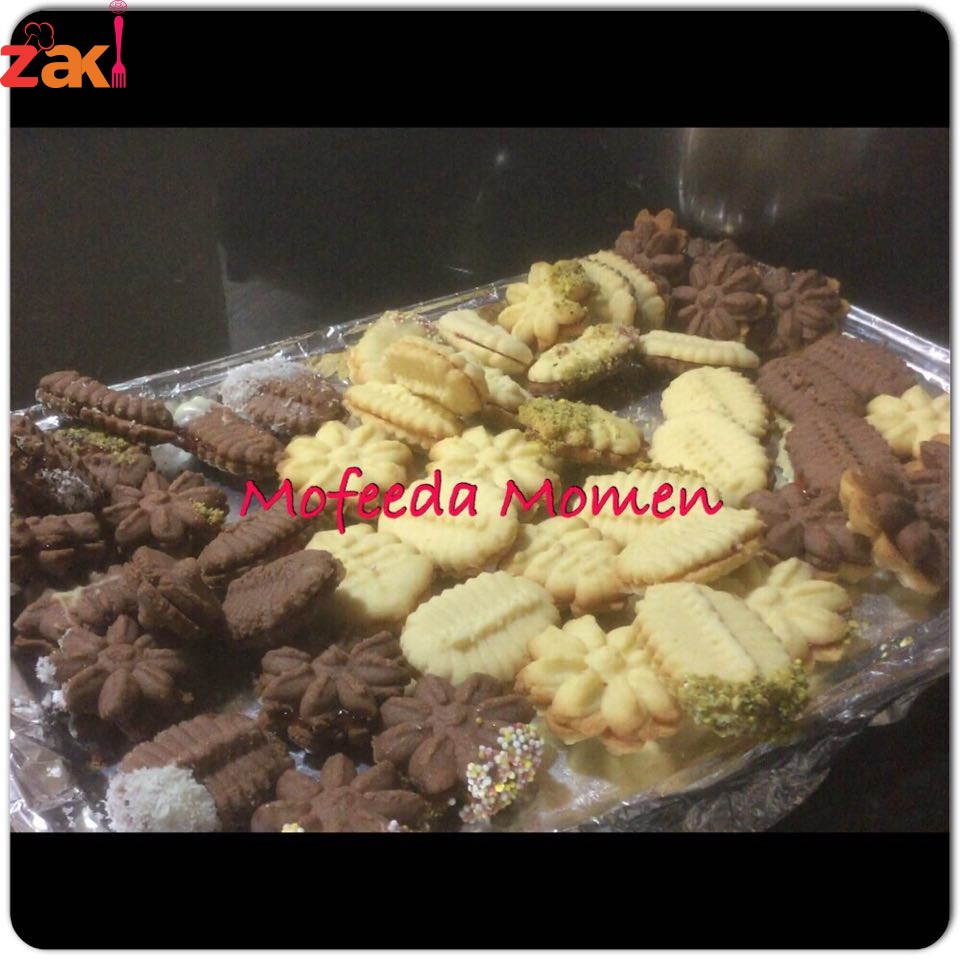 ممكن تقسيم العجينة نصفين نصف يترك ابيض ويضاف كاكاو الي النصف الباقي يسوف في فرن هادي ولا يترك يتغير لونه بعد ان يبرد تلصق كل حبتين بالمربي وتجمل بالشيكولاته والمكسرات#مفيدة#