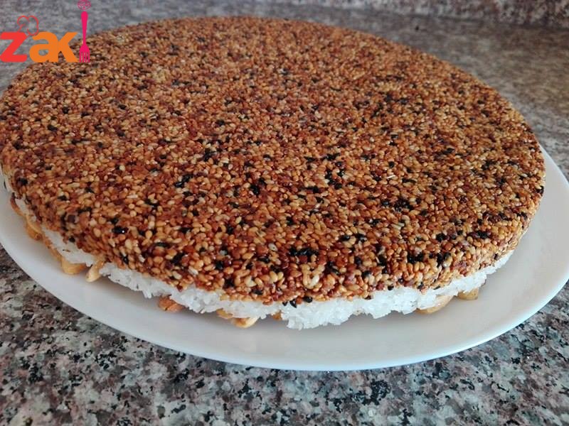 حلا سمسميه مع الفستوقيه بجوز الهند بشكل طبقات