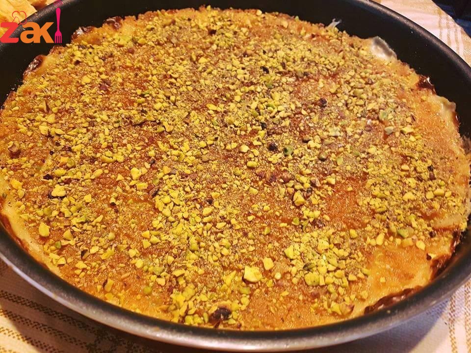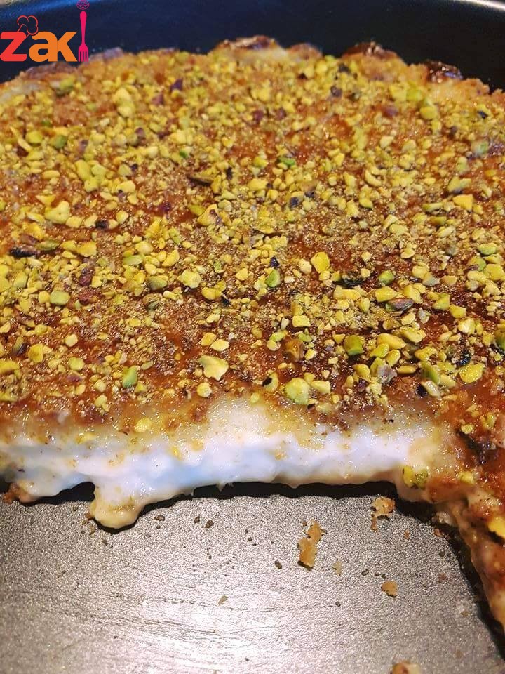 ومن فوق بسكب عليها القطر وبزين بالفستق الحلبي