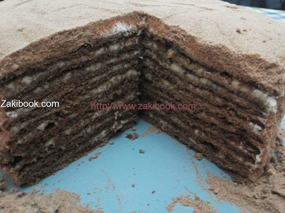 كيكة طبقات الشوكولاته مكونه من طبقات رقيقه على طريقة الكيكه الروسيه بطريقه جميله ومتقنه من صنع المبدعه Ghamra Sy  نتركم مع الطريقه.