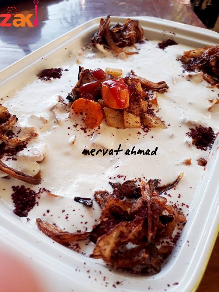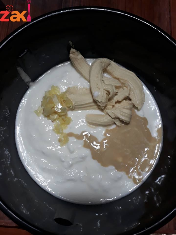 وبتخلطي كيلو لبن رايب مع علبه حمص مدمس ومعلقتين طحينيه وربع كوب عصير ليمون و4 سنون توم مهروس ورشه سماق وملح وصبيه فوق الخبز والمقالي
