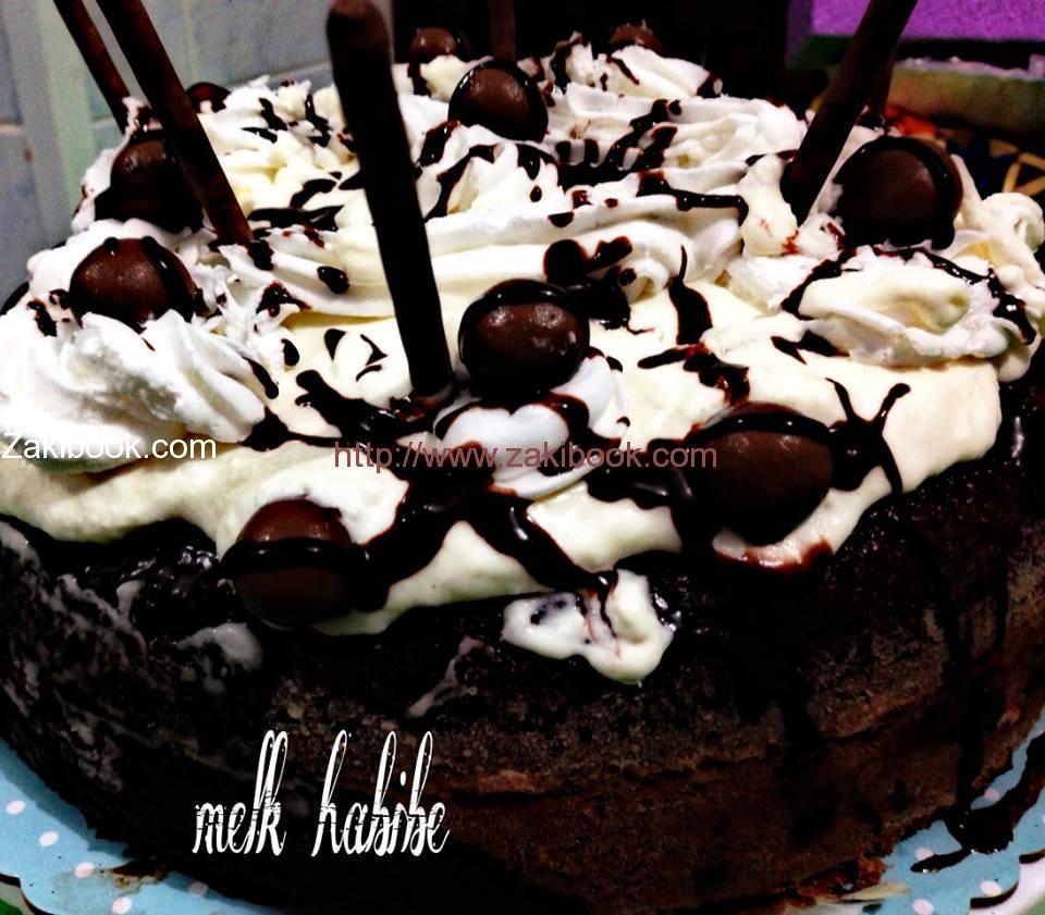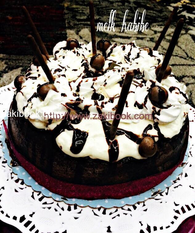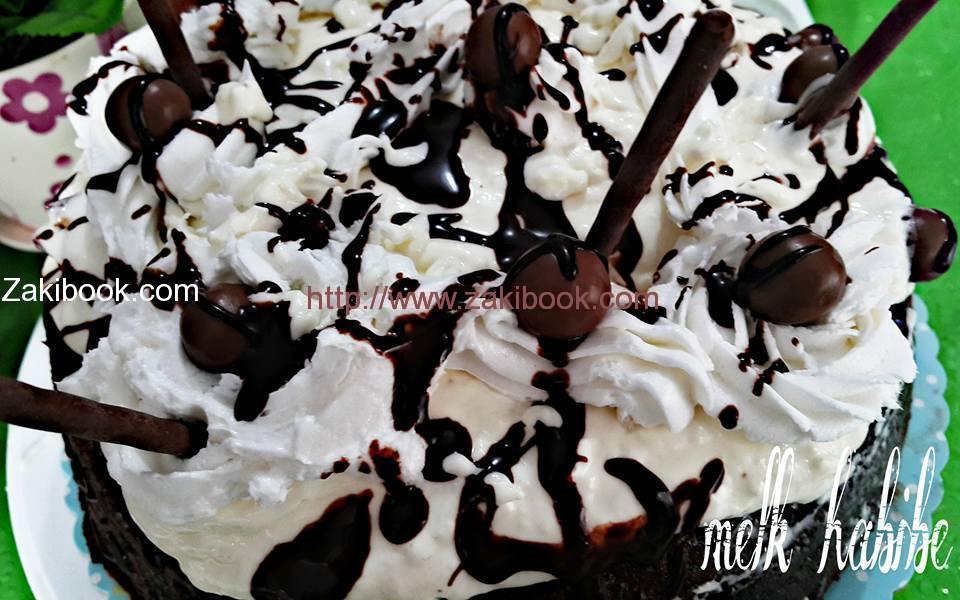– الطبقه التالته هي الزينة كريمه شانتيه عباره عن 5 معالق كبار كريم شانتيه مع ثُلث كوب ماء متلج ونضريهم كويس ونزين به التورته يالشكل الي يعجبك ونزينها بباقي صوص الشكولاته والمالتيزر.