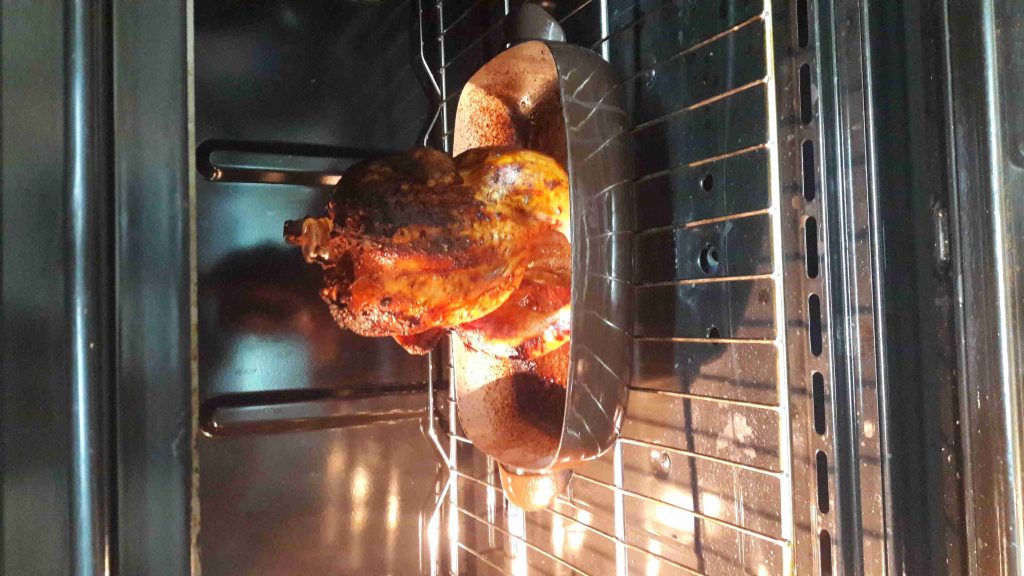 بنخلط كل المقادير و بنتبل الدجاجة فيهم من داخلها و تحت جلدها قدر المستطاع و من برا و بنتركها بالتلاجه ليلة … بنطلعها قبل الشوي و بنقعدها على القنينة( بنعبي القنينة مي) و على الفرن لمدة ساعه و ربع تقريبا…. بنضل نشرب الدجاجة من المرقه الي رح تتكون تحتها …. تقدم مع بطاطا مقليه و سلطات … صحتين وعافيه 😊😙😚