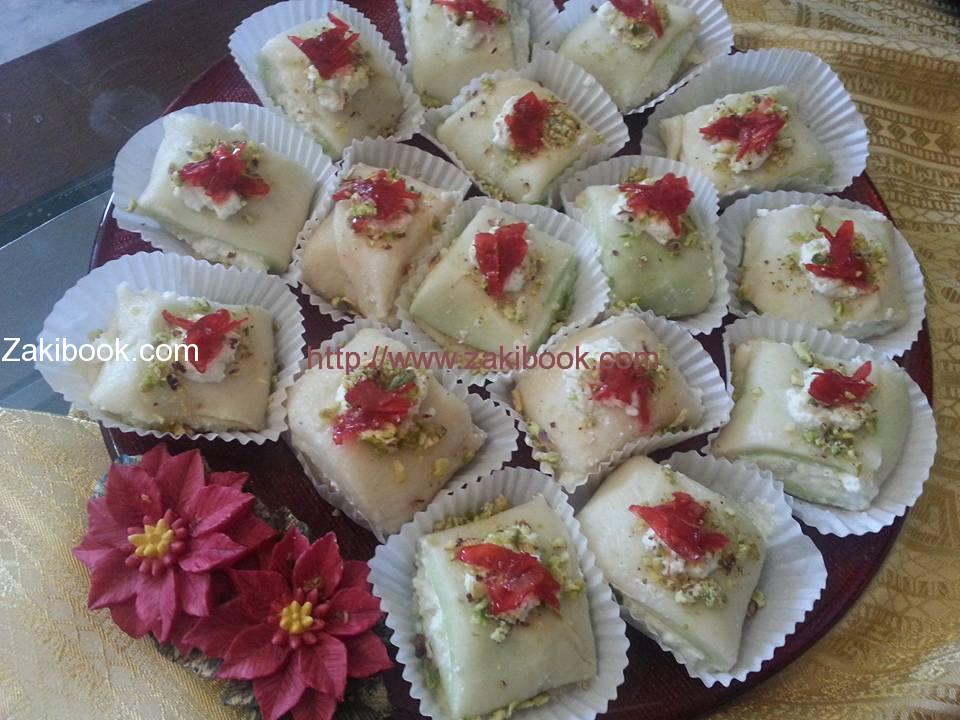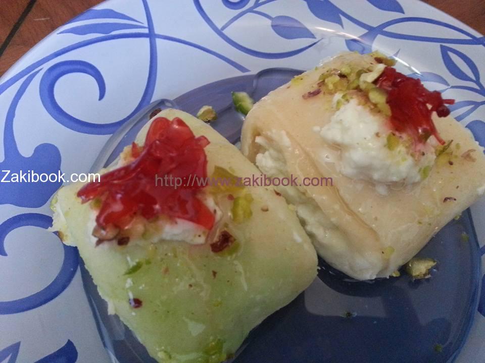 – و احشيها قشطة بالطول و لفيها رول و قطعيها و زينيها بالفستق