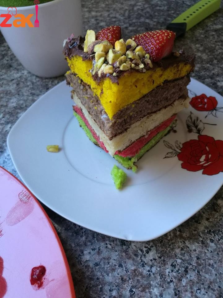 ..منعمل خلطة كيك عاديه اي خلطه انتو بتفضلوها ومنقسمها بزبادي إلى خمس اقسام متساوية.