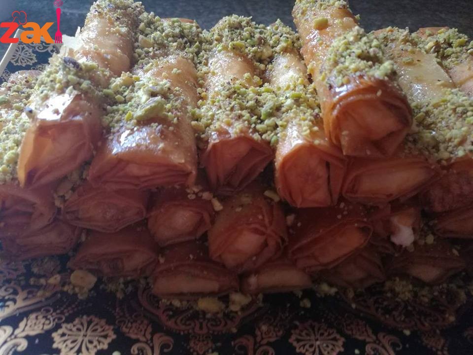 ومنبلش نجيب قطعه قطعه منحشيها شوية قشطه وما تكثرو ومنلفها ومنلف الاطراف معها ومنسكرها